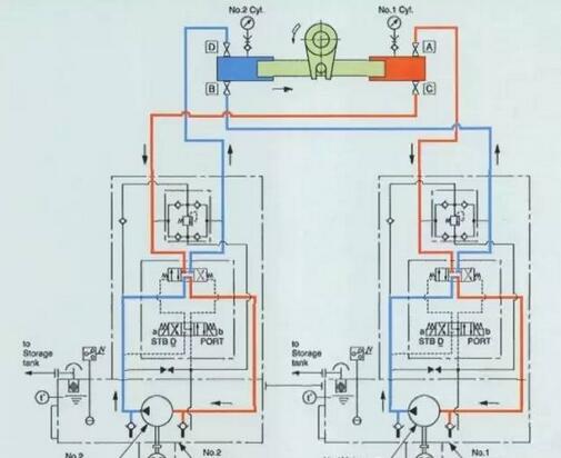 無論是哪種品牌的撞桿式舵機,其基本結構還是比較相似的,在這里我們以川崎生產的舵機進行舉例,來加深大家的印象,順便讓大家了解一下什么是閥控性,什么是泵控型舵機,簡而言之,閥控性是依靠換向閥來進行換向的舵機,大部份應用在相對較小的船舶上。